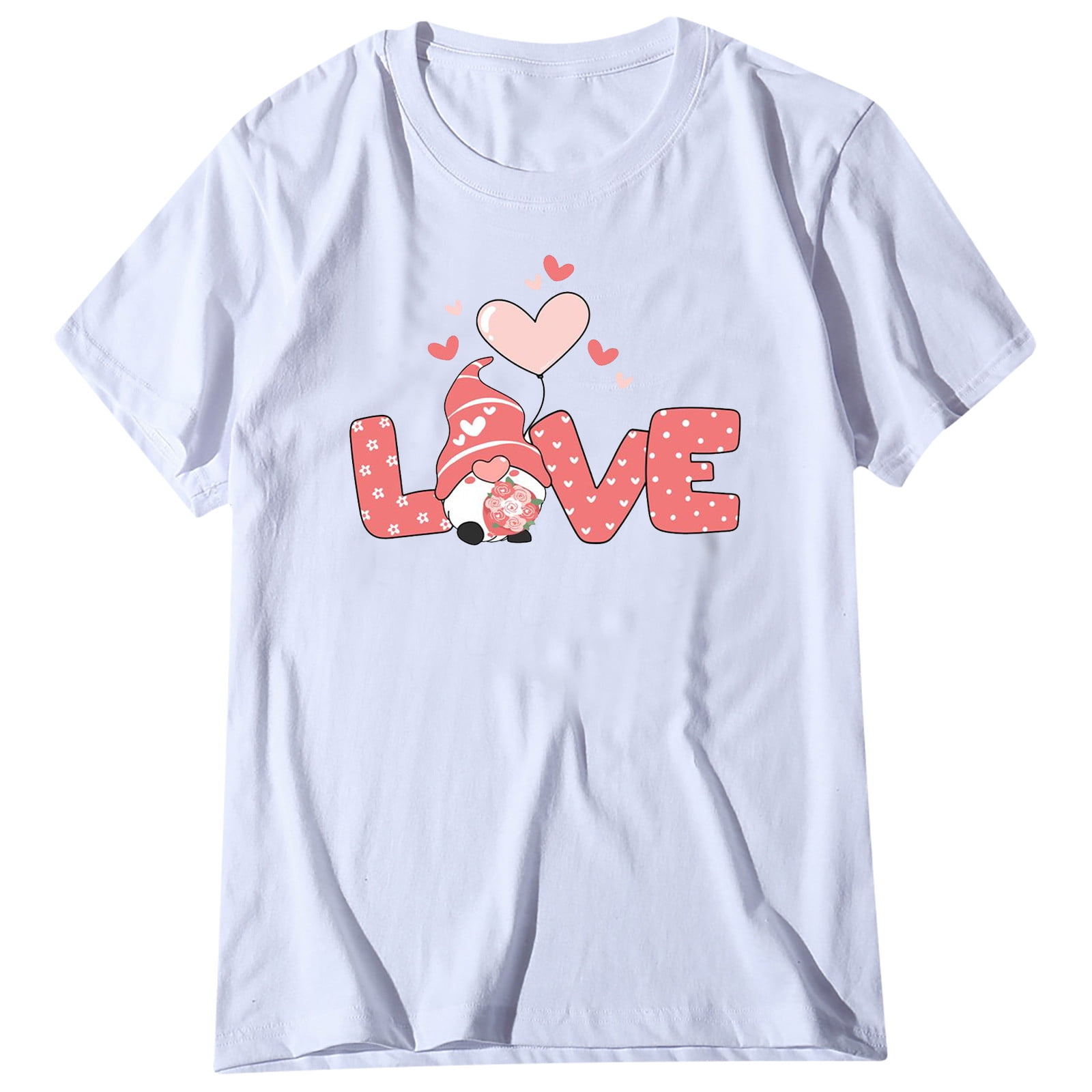 Cobkk Sexy Tops For Women Short Sleeve Round Neck Blouses Shirts Ladies Casual Valentine S Day Cute Love Printed Pullover Short Sleeve T Shirt Top Womens Shirts Trendy White Print Love Heart Walmart Com